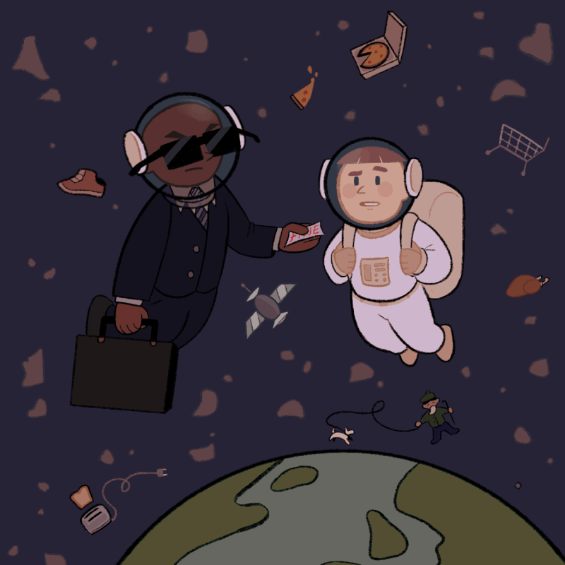 After reading the article, i wanted to continue the humorous route to keep myself entertained throughout the project. To do so in most of my ideas i had the junk in space by a random assortment of objects that wouldn't be found in space.